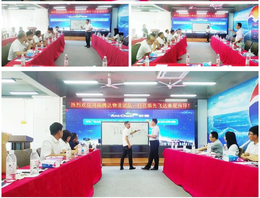 接下來,蟻鏈先飛達物流天下配董事長兼商學(xué)院院長蘇朝海、先飛達物流商學(xué)院執(zhí)行院長蒙宇明、IT總監(jiān)李春泉、行政人事經(jīng)理、客服副總黃忠任等高管及蟻鏈招商總監(jiān)徐康、蟻鏈營銷總監(jiān)徐康等人和蟻鏈騰達物流團隊就企業(yè)經(jīng)營、運營、理賠、人事、培訓(xùn)、企劃等各方面工作做了開誠布公、詳細(xì)深入的探討和交流,現(xiàn)場氣氛輕松愉悅、掌聲不斷,各位領(lǐng)導(dǎo)深入淺出、金句頻出。